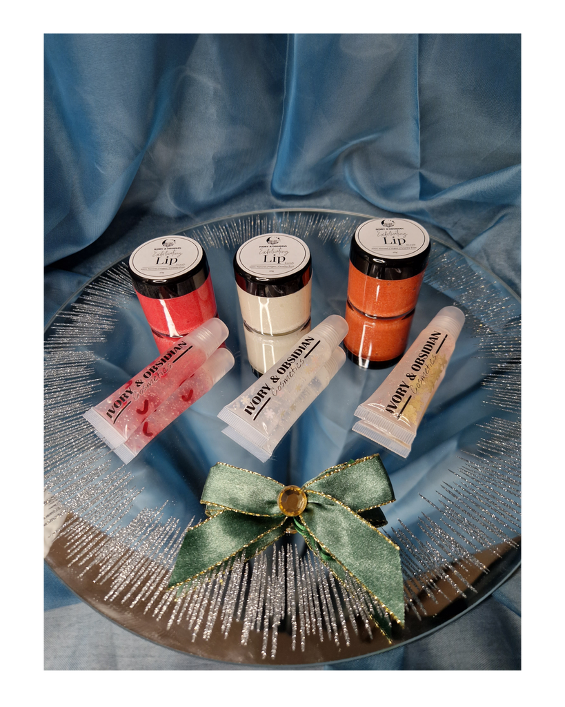 Our Christmas lip set is the perfect little edition for the hoilday season.These make a good stocking filler pressie or paired beautiful with any of the ivory and obsidian collection.This set also comes with the pink nourishing lip mask.No matter which one you chose the Candy cane , Snowflake or gingerbread man.. all of our lip scrubs are vegan friendly , natural and edible.